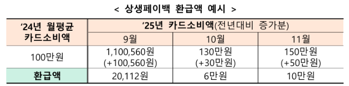 | 기준 | 월 소비액 | 증가분 | 환급(20%) |